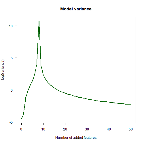 plot(0:K, df$vars, "l", xlab="Number of added features",